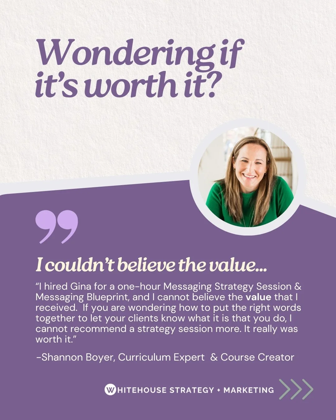 “Gina and I partnered on my About Me page, and I was completely blown away! She nailed it. She totally understood myself, where I come from, and my passion for female entrepreneurs. I was just over the moon. She over-delivered. It was way more than what I thought I was getting. I was so pleased, and I've already started hearing really great comments and feedback from my clients and followers.”